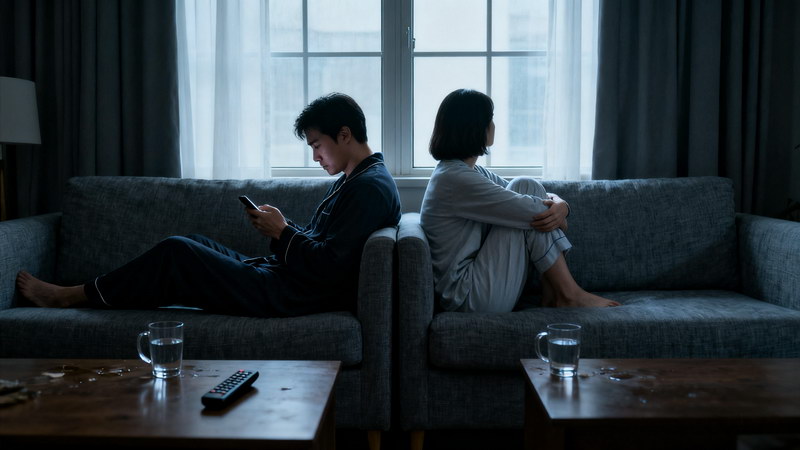 飯桌上,曾經(jīng)的歡聲笑語被沉默所取代,兩人各自吃著飯,眼神都不愿交匯;回到家中,不再有熱情的擁抱和問候,而是各自忙碌,仿佛對方只是一個陌生人;夜晚,同床卻異夢,背對背而眠,中間像是隔著一道無法逾越的鴻溝。